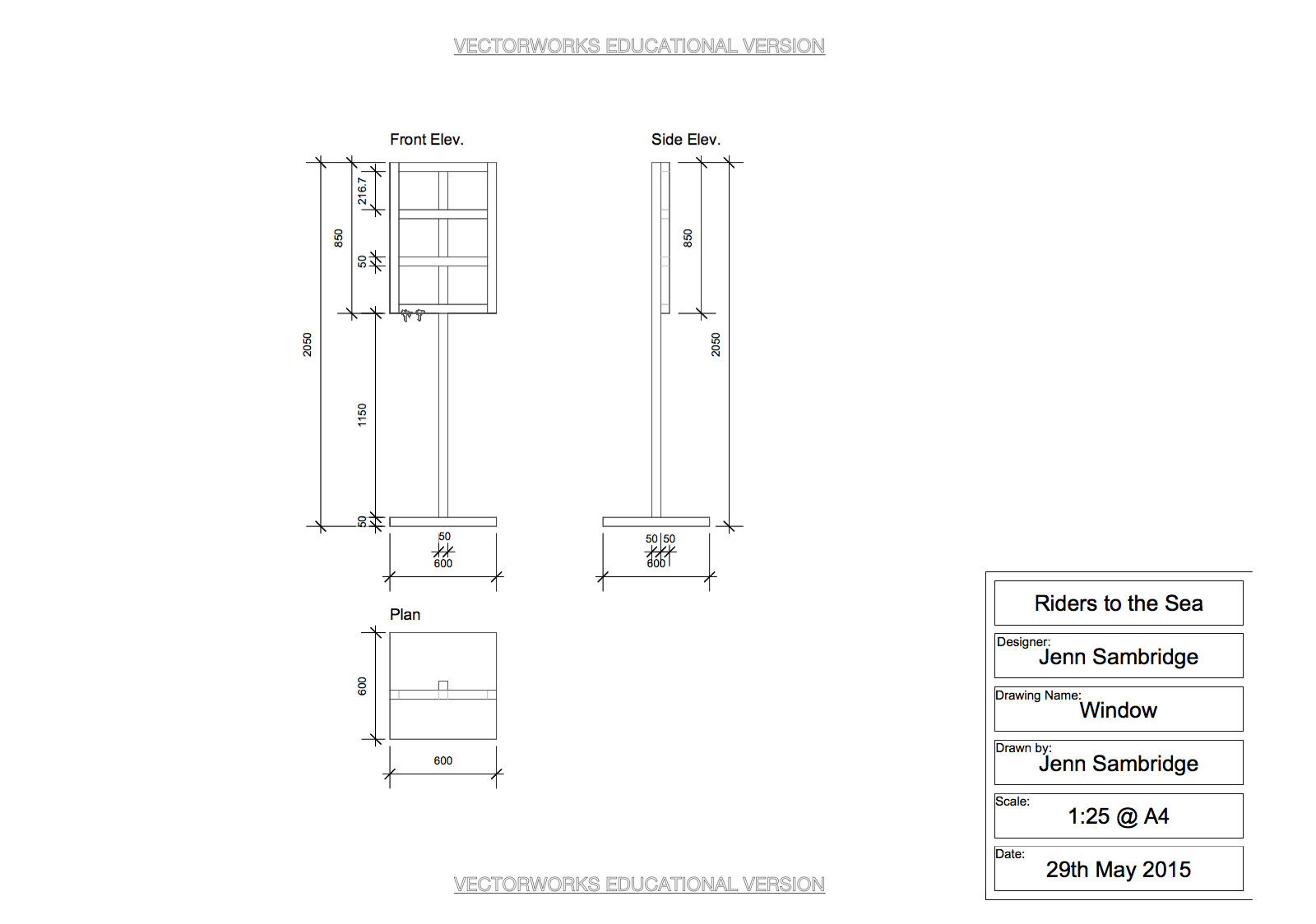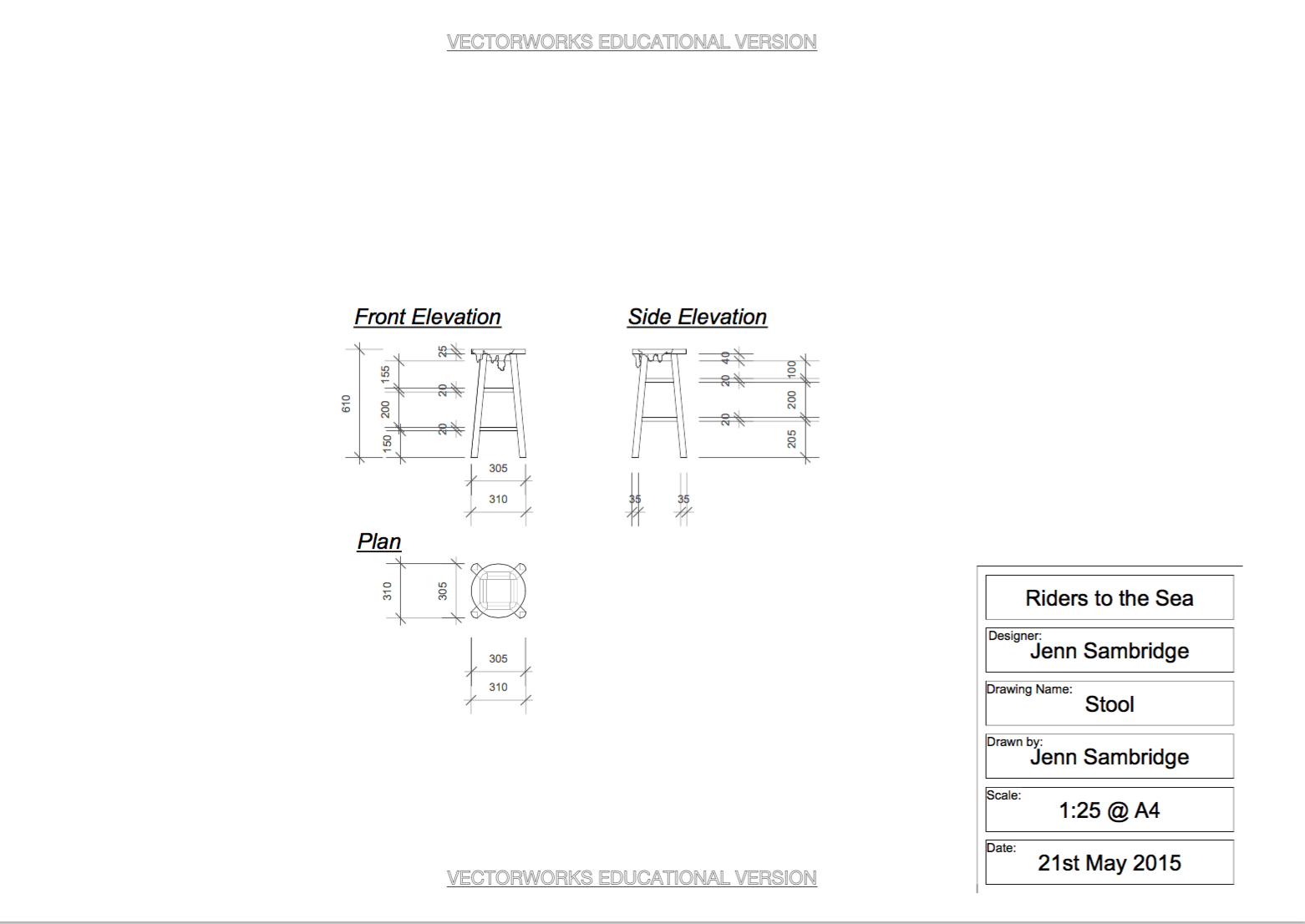 ‘Riders to the Sea’ – Technical Drawings A selection of technical drawings at 1:25 and 1:50 scale for objects in my final individual 3rd-year project design for ‘Riders to the Sea’ by Vaughan Williams.