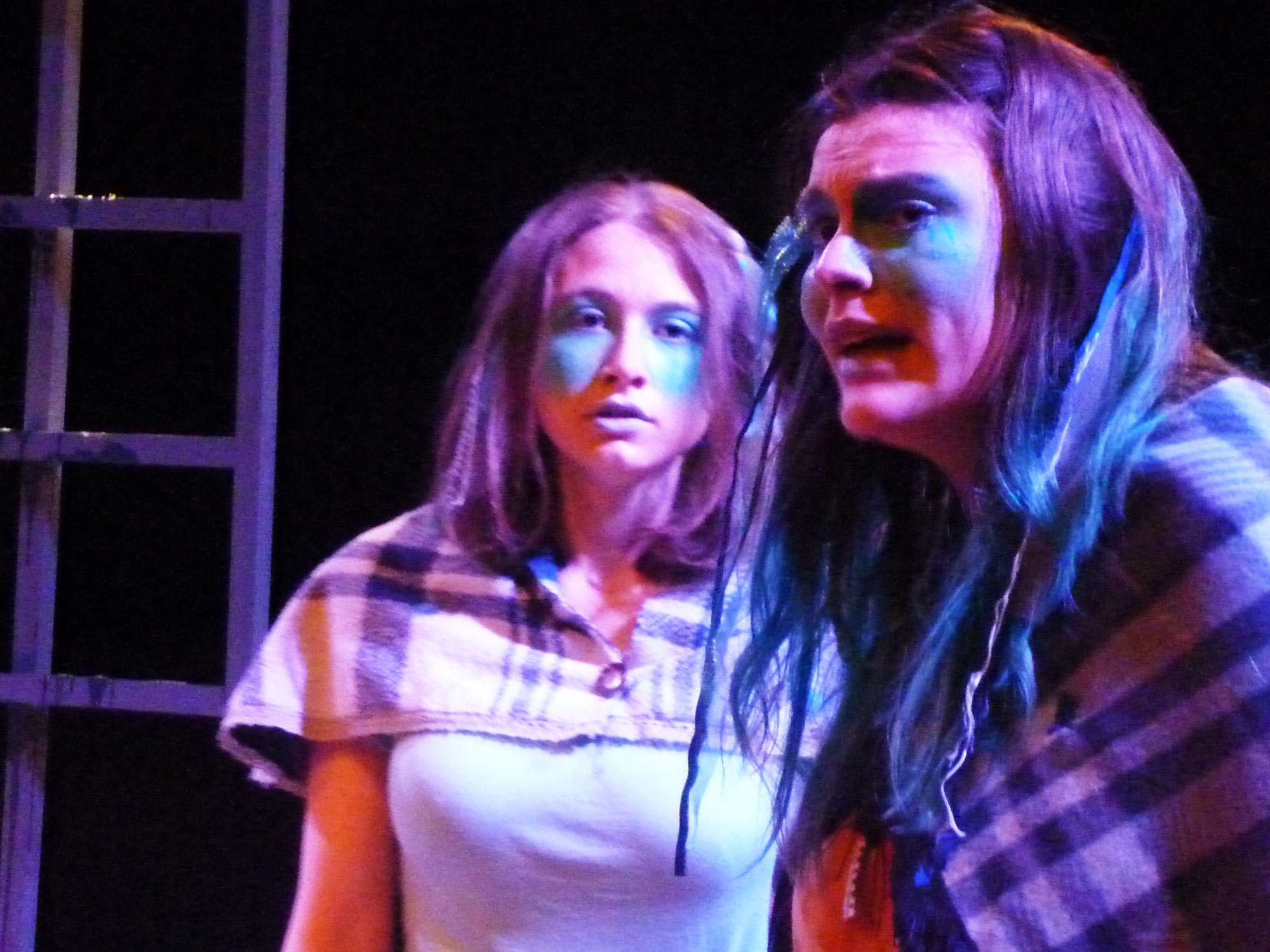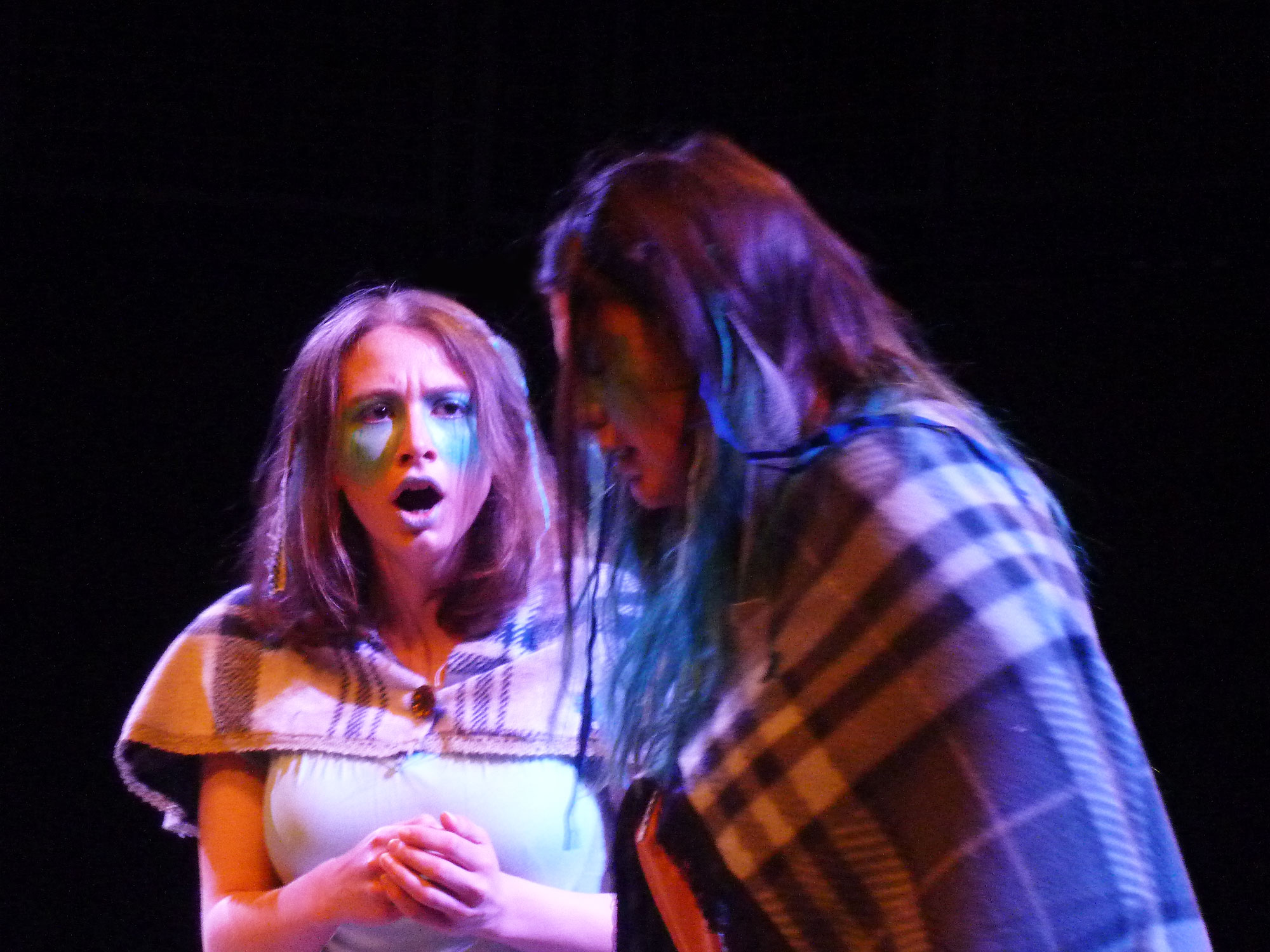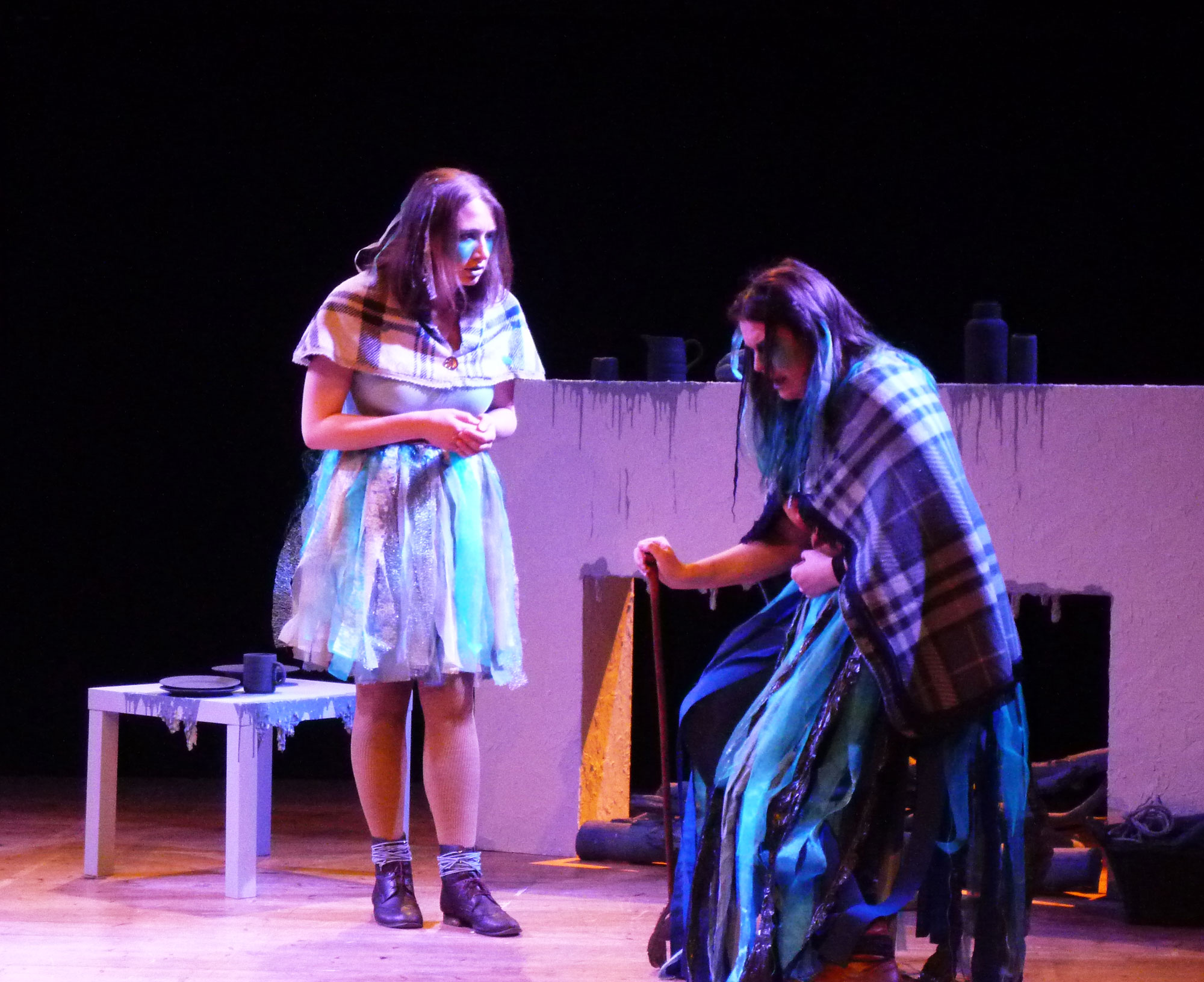 For the performance, the two daughters, Cathleen and Nora, were merged into one, and I also played Maurya. Maurya has lost five of her six sons, her husband, and her father-in-law to the sea – in the first of these extracts she and her last son, Bartley, have parted on a bad word as he is heading overseas to a horse market, and she fears he will die too. Her daughter is persuading her to go and interceptĀ him to speak to him before he leaves. In the second extract, she returns, having seen Bartley but been unable to speak to him because he was being followed by her fifth son, Michael’s, ghost.